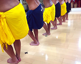 「‘Ote‘a オテア」:パーカッションやドラムビートのリズムだけで腰を激しく動かす踊りです。男性は足、女性は腰の動きが主体の激しく速い動きの踊りです。